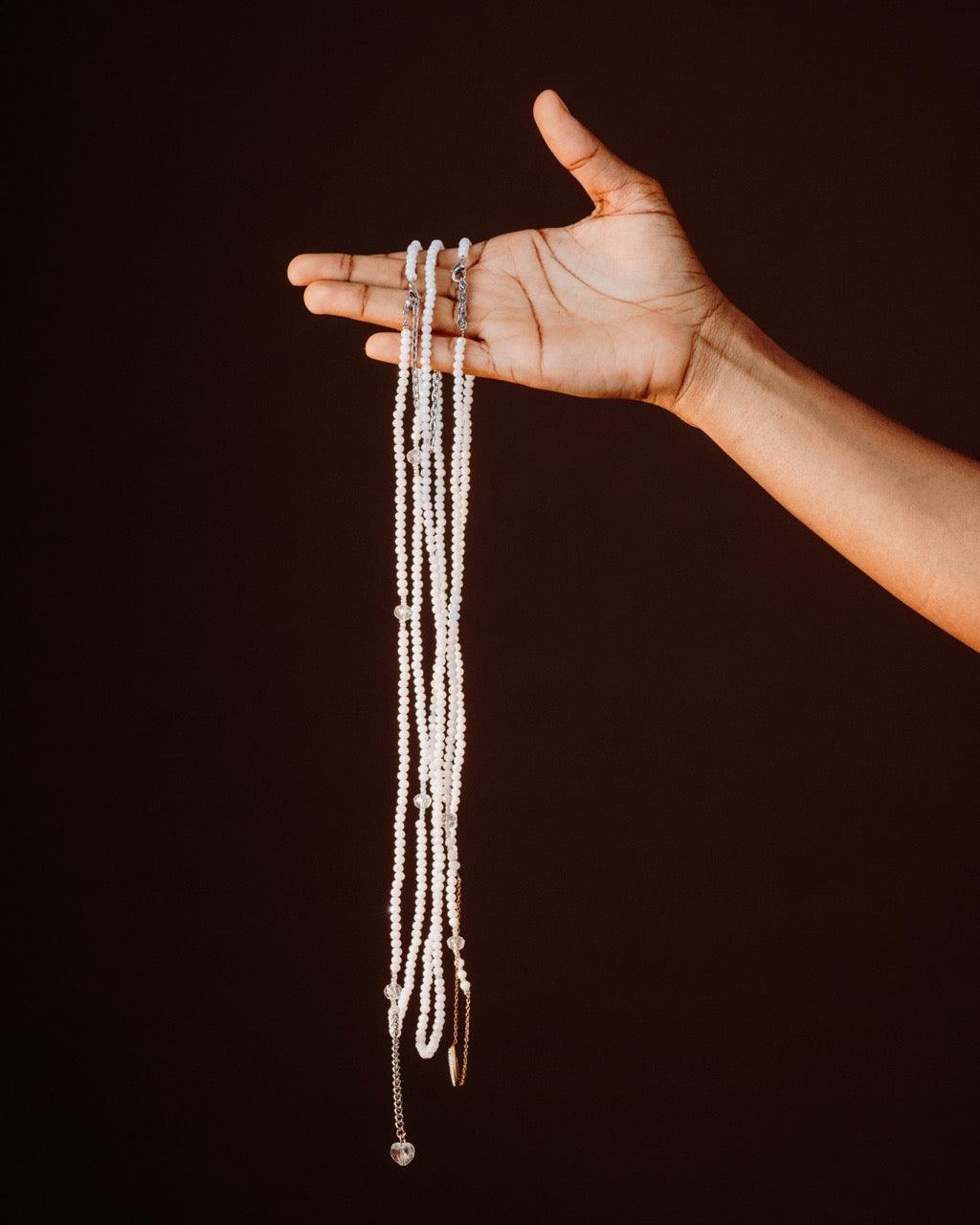 Nos bayas sont pensées pour résister à l’eau grâce à leurs matériaux soigneusement choisis : le fil de pêche ultra résistant et l’acier inoxydable pour les chaînes. Ces composants leur permettent d’être portées sous la douche, à la plage ou au quotidien, sans craindre l’usure. Elles s’intègrent à ta routine comme une seconde peau, fidèle et élégante, jour après jour.